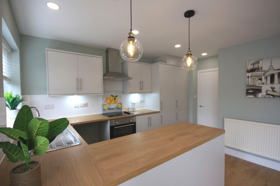 This project consisted of a partial renovation of a 2-bedroom bungalow in Stoke on Trent, which was renovated to sell. Some of the works carried out included the removal of an internal wall to create an open-plan spacious room, rebuild of the porch, a new kitchen, new flooring, re-wiring, plastering, and full redecoration.